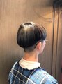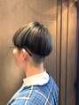 ブリーチでハイライトを表面にベースの地毛がチラッと見える間隔で入れました。上からブリーチ部分にグリーンを乗せました。カットはサイドと襟足の刈り上げを3ミリで、マッシュのラインで繋げました。