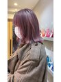 ケアブリーチで2回ブリーチしたベースに薄いピンクパールをオンカラー。カットは鎖骨ラインのロングボブスタイル。