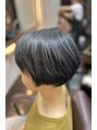 カラーはブリーチでトーンアップしてから、バイロレットアッシュのダブルカラー。やや前下がりのラインのショートグラボブ、襟足を短くカットする事で後頭部のボリューム感が出る様にカットしました