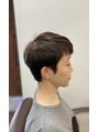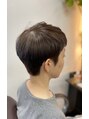 サイドと襟足を短く切り込み、トップは動きが出やすい様に長短をつけてカットベリーショートですがグラベースのカットで女性らしい丸みのあるシルエットにしました。カラーはブリーチでトーンアップしてあったので、アッシュグレイをのせて仕上げました