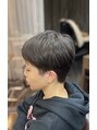 トップに動きを出したベリーショートスタイルバングをアシンメトリーにする事でデザインをプラス。ブリーチをしてあったので透明感のあるグレイッシュに仕上げました