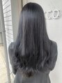 暗髪でもしっかり透明感。濃いめのブルーアッシュの配合で赤みを抑えています。オフィスでもOKな落ち着いたカラー。