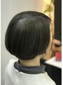 アシンメトリーなグラボブ、360度どこから見ても美バランスになる様にライン、シルエット、フォルムにこだわってカットしました。カラーはモノトーンアッシュでスモーキーで透明感のある仕上がりに。