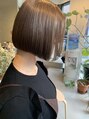 ぱつっとボブで軽めの切りっぱなしボブカラーも透明感あるベージュなので重く見えないです。ブリーチしていないけど柔らかく見えるカラーが特徴