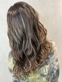 ハイライトを全体に16レベルペールイエローまで脱色して、ベースは7レベルのダークグレージュをON。かきあげたり、まとめたりしても、ハイライトが見える可愛いデザインです。