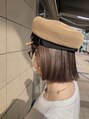 フラットなラインのボブスタイルにハイライトで動きをつけて、カラーは春っぽいほんのりピンクベージュに。