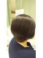 ベースは襟足が短めの丸みのあるマッシュショートです。顔まわりと襟足は軽さを出して仕上げました。