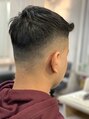 トップに長さを残したショートフェザーアップバングスタイル!フェードスタイルで刈り上げる事で、男らしくビシッと決まります!直毛の方はパーマをプラスすると、スタイリングが楽になります!!フェードスタイルお任せ下さい!!