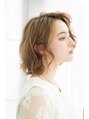 外ハネで巻いた後に上に内巻きを入れてくびれるように♪表面はランダムに縦巻きを入れてエアリーな質感に☆顔まわりのサイドバングは少し前に押しながら外巻きにすると、ふわっと華やかになじみます☆オイルをつけて軽めの仕上がりに♪♪