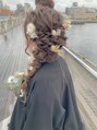ドライフラワーを散りばめたサイドのあみおろしスタイルです