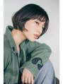 バング両端からサイドにかけて緩やかにつながる、前上がりラインがチャーミングなボブスタイル。シルエットに丸さを出すことで、女性らしさのあるフォルムになります。服が似合う髪です!
