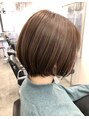 丸みのあるショートボブです。アッシュベージュ系のカラーでくすみ過ぎず柔らかさのあるスタイルです。