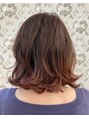 春にぴったりなピンクカラー!レイヤースタイルのインナーに濃い目のピンクを入れることでグラデーションの様に見えます♪ベースは明るめのピンクベージュ、同系色でまとめ統一感のあるデザインカラーになっています。