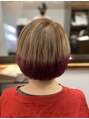 カットはシンプルなグラボブです、カラーは全体がブリーチでトーンアップされているので、今回は髪のすその部分をグルッと1周ラインカラーでツートンに染め分けました。すそ部分はヴァイオレットピンク、それ以外はミルキーベージュです