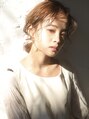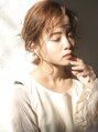 トレンドのシースルーバングをゆるく巻き、全体をMIXに巻くことで、ゆるく柔らかい雰囲気になります。表面はほぐしてオイルで仕上げています。