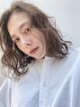 ミディアムボブのウェーブパーマスタイル。顔まわりのパーマも根元から立ち上がるようにしっかりめに。軽く柔らかくみせるためにハーフドライでムースでスタイリング。