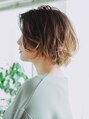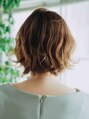 頭のシルエットがキレイに見えるひし形ボブスタイルです。長めなバングは7:3に分け、大人っぽい雰囲気にします。髪が軽く見えるように、明るめなベージュカラーに!髪全体に、動きが出るようにコテでランダムに巻きます。