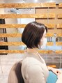 短すぎないショートボブに、オリーブ系の柔らかなカラーで、女性らしさを☆