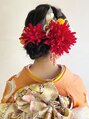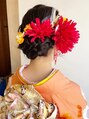 【気に入ったスタイルはブックマークをしてご提示下さい】編み込みを混ぜたシニヨンにお花とレースを飾り付けております。