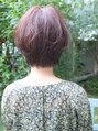 前下がりラインのセンターパートショートです。 いつものショートスタイルに飽きた方におすすめです。 前下がりのスタイルは大人っぽくクールな印象になるので、いろいろな年代の方に似合わせができるショートスタイルです。