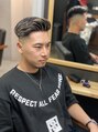 フワッと前髪を立ち上げるポンパドールスタイル。外国人風にハイライトを散りばめてます。サイドパートは大人気スタイルのひとつです。