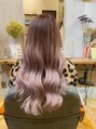 地毛は濃いピンクパープルにカラーし、エクステを明るめにつけてグラデーションにしています。【シールエクステ】