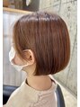 縮毛矯正後なのに毛先が真っ直ぐになりすぎず、自然な丸みが出るナチュラルボブです。少し変化が欲しいとのオーダーでしたので、前上がりぎみにして顔まわりをより軽めにしてみました。流行りのインナーカラーとも相性バッチリです。
