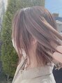 たっぷり入れたハイライトに、柔らかな明るめベージュをオン。切りっぱなしのボブに相性抜群の透け感あるカラーです。