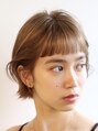 ミニボブとオン眉の個性的な髪型ですが、1ブリーチをしたベージュカラーにする事により柔らかい印象になります。