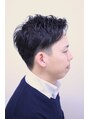 サイドはバリカンでツーブロックにしバックはハサミで自然に刈り上げたアップバングスタイル顔の表情も明るく見え印象UP!!