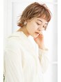 26mmのアイロンで毛先に外ハネ。表面はランダムにウェーブ巻きを、加えエアリーに☆セラムとオイルで全体にしっかりつけ、艶感ある仕上げに!