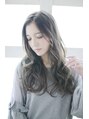 かきあげた前髪にゆるいミックスカールスタイルです。大きなカールが動きを出してくれますので人気のアレンジスタイルです。