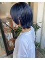 ウルフカット。カラーはネイビー、ケアブリーチ1.5回~。