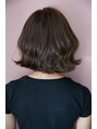ヘアカラーはナチュラルなブラウンをベースアッシュ系のカラーにしています。室内にいると暗く外にいると明るめに見えます。全体的に髪の毛を小さめのコテでクルクル巻いていくと今の流行りっぽい感じに仕上げることができます。