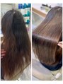 Aujuaトリートメントで髪質・お悩み・今後のなりたいスタイルに合わせて提供しています。髪の毛の内部を補修して潤いを保ち、まとまりある髪の毛に仕上がります。約1か月程度持ちます。【モデルの髪の状態】二か月ごとのカラー/コテによる熱のダメージ