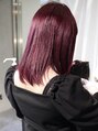 ダメージレスなケアブリーチを使い1ブリーチしてカシスレッドをオン。色持ちも良く綺麗です。