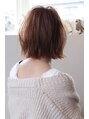 全体的にふんわり仕上げたスタイルです。カットとパーマで切りっぱなしボブにウェーブを持たせ、カラーでは透明感がでるようハイトーンのアッシュベージュに仕上げてあります。シースルーオン眉バングで一気にイマドキに。【静岡/静岡駅/髪質改善】
