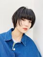 ひし形シルエットのミニボブをナチュラルマッシュ、ショートマッシュな雰囲気に。グレーベージュやダークアッシュ、ショコラグレージュ等スローカラーで透明感や抜け感をプラス。黒髪とも相性良いです。重めバングでクールに表現できますよ。