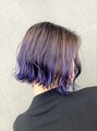 - ブリーチ後に塩基性トリートメントでバイオレットをオン!ケアブリーチも使用しダメージは最小限に。