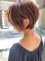 顔まわりをゆったりとした長さにしたハンサムショート。毛先を先細りにして束感のあるスタイルなのでペタッとしやすい方におすすめです。モカブラウンが上品さをプラスしてくれます。