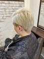 2ブロックでメリハリをつけたスタイル。ブリーチハイトーンカラーでおしゃれ感をUP