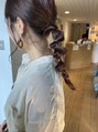 - ヘアアレンジ1つに結び毛先は間隔をあけてゴムで結び引き出して崩しています!