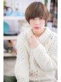 温かみのあるベージュカラーやミルクティカラーが、丸みのある女の子らしいシルエットにマッチ。程良いドライ感でふんわりやわらかく仕上げるのがポイント。ワイドバングで目元を印象つけて目力UP!ガーリーショートで誰からも愛される妹系の可愛さを醸して。
