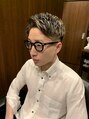 周りはグラデーション刈り上げ。前髪を上げて トップふんわり立たせて横に流しやすい長さに選定しました。