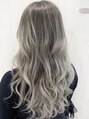 バレイヤージュを施し赤味のない外国人風に!カラーはくすみ感を強調し最新のデザインカラーを外国人風に仕上げ、当店オリジナルの人毛レミーエクステをチョイスし長さとボリューム感をだしてアレンジ多彩な万能スタイルで巻き髪スタイルを楽しめます