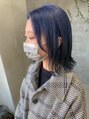 ネイビーカラー、ブリーチ1回、外はねボブ、ブルー