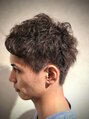 サイド・えり足は刈り上げて、トップに長さを残したツーブロックスタイル。無造作にスタイリングがしやすいようにパーマをかけています!パーマ効果でスタイリング時間を短縮して、カッコよく☆〈理容室〉【バーバー・シェービング・ヘッドスパ・メンズ・】