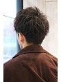 やりすぎないソフトツイスト質感スッキリ見えるアップバングショートも男らしさを際立たせます