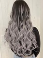 バレイヤージュを施し赤味のない外国人風に!カラーはくすみ感を強調し最新のデザインカラーを外国人風に仕上げ、当店オリジナルの人毛レミーエクステをチョイスし長さとボリューム感をだしてアレンジ多彩な万能スタイルで巻き髪スタイルを楽しめます
