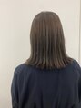 ぱつんと切りっぱなしにしたストレートロブ毛先のぱつんとした厚みをだすのがポイントです。